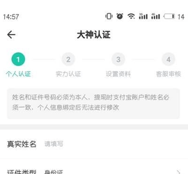 4.进入大神认证,首先填写个人资料,然后就是实力认证,设置资料,客服审核,只要客服审核通过了就可以陪玩了。