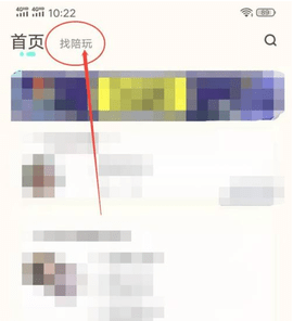 2、点击首页,然后点击【找陪玩】。
