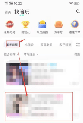 3.自行选择要陪玩的游戏,以王者荣耀为例;