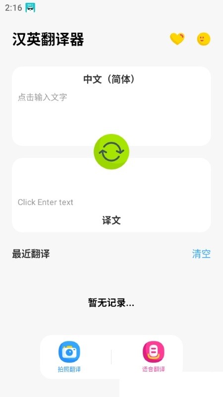 汉英翻译器app是一款功能非常专业的文字翻译软件,具有非常实用的翻译功能,能够将中文翻译为英文或英文翻译为中文,满足人们日常生活和工作中的多语种沟通需求。并且系统还可以通过输入文字、语音或拍照等方式进行翻译,支持多个语言识别,使用起来非常方便。喜欢的朋友快来下载试试看吧!