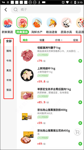 3、其中每种不同类型的商品都详细划分了多种分类,可自由进行筛选;