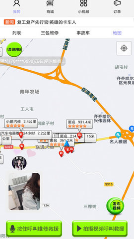 2.卡车司机遇到维修或配件问题时,可在APP中发送求救信息;