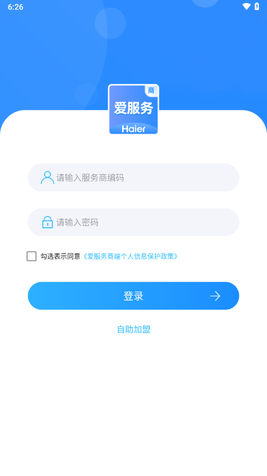 3、进入登录界面,点击自助加盟。