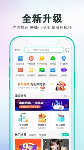 家庭宽带一站式自助服务(续包、优惠提速、宽带新装)、生活缴费。