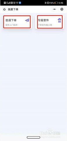 点击在线下单进入在线下单界面,可选择【普通下单】和【专属寄件】两种模式。
