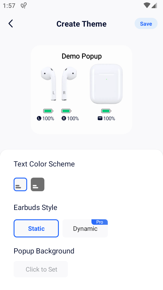 4、在Android端电量弹窗查看工具,支持AirPods1、AirPods2、AirPodsPro,Beats耳机等;
