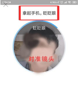 6、手机离人脸300~600毫米,进行人脸扫描,对准镜头眨眨眼,