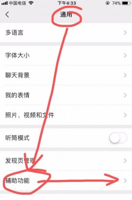 3.第三步,在通用页面中找到下方的辅助功能,点击打开。