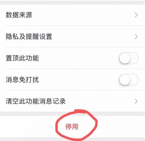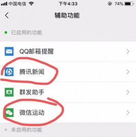 5. 第五步,回到辅助功能页面,点击下方的微信运动并点击*下方的停用选项。