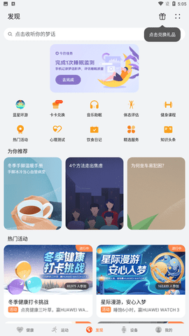 华为运动健康app是一款专为运动而生的应用软件。在华为运动健康app软件中,软件为你贴身规划每一天运动量,每天让你的运动达标,为你的身体素质做保障。快来下载华为运动健康app吧!