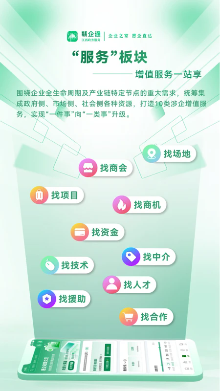 赣企通,江西省涉企移动政务服务平台,面向全省400+万市场主体提供涉企政务服务、惠企政策服务、增值服务和互动服务,