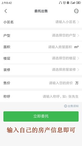 在这个界面我们将我们自己要出售的房子的详细信息填写完毕后就能进行房子的出售了。