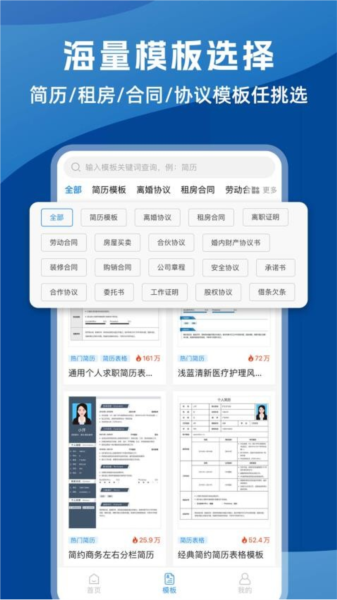 5、丰富的模板资源,包括简历模板、合同模板等,让用户轻松应对各种文档需求。