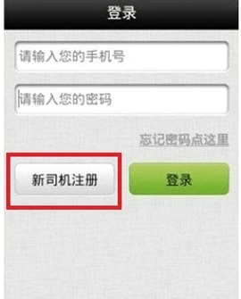 3、启动快递打车司机班,首页面如下图,第一次使用请点击“新司机注册”按钮!