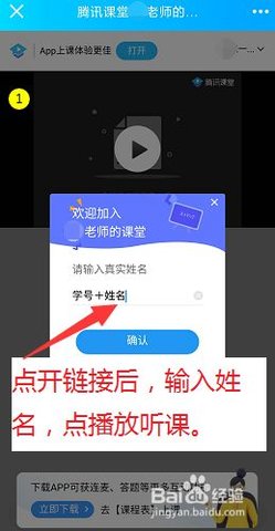 1.点击老师在腾讯课堂教师端发来的链接后,输入姓名,点击播放即可听课。