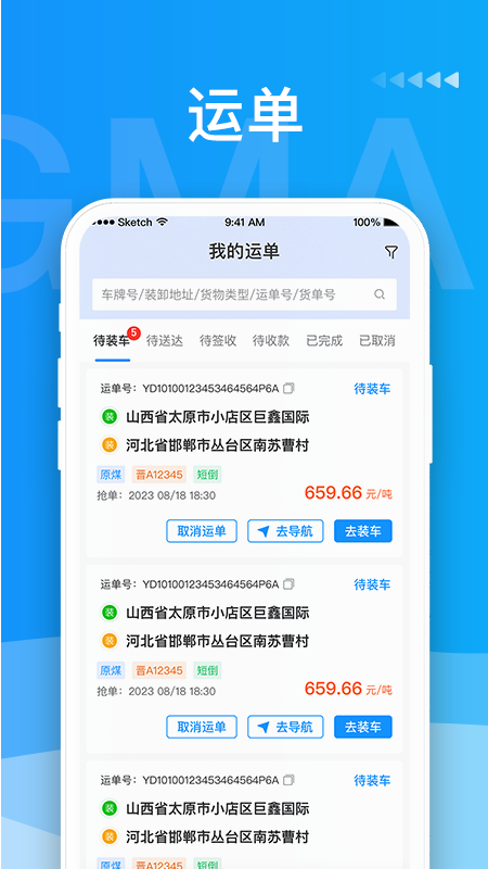 蒙马智运司机致力于帮助司机用户快捷的获取订单并完成承运,平台货源信息更新及时并能全程跟踪。