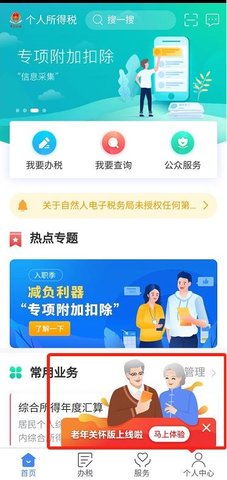 鄂斗163手游网小编为你提供个人所得税APP关怀版下载,个人所得税关怀版是一款服务于老年人的手机报税软件,为了让老年人看的更加清楚,关怀版下的字迹展示比原先大数倍。