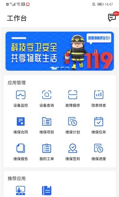 金利达维保通app安卓版是专门为消防管理所打造的一款设备管理软件,这款软件可以实时监测消防设备的状态,查询设备故障信息,帮助消防人员更高效的完成工作。