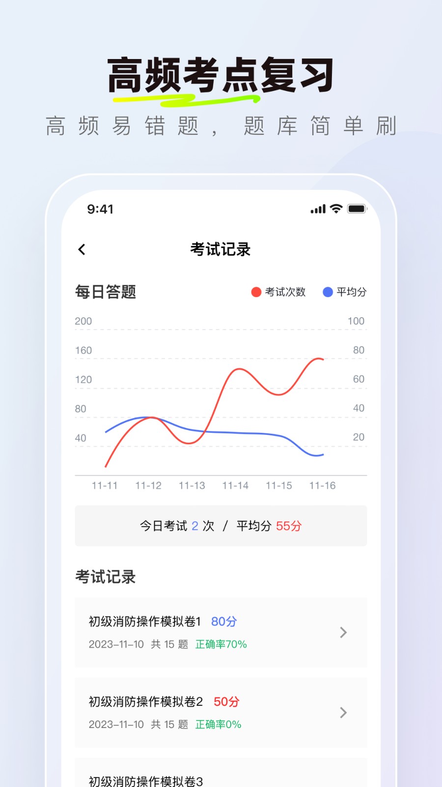 练习模式结合考试模式可以让用户更高效的练题学习,巩固各种考点知识。