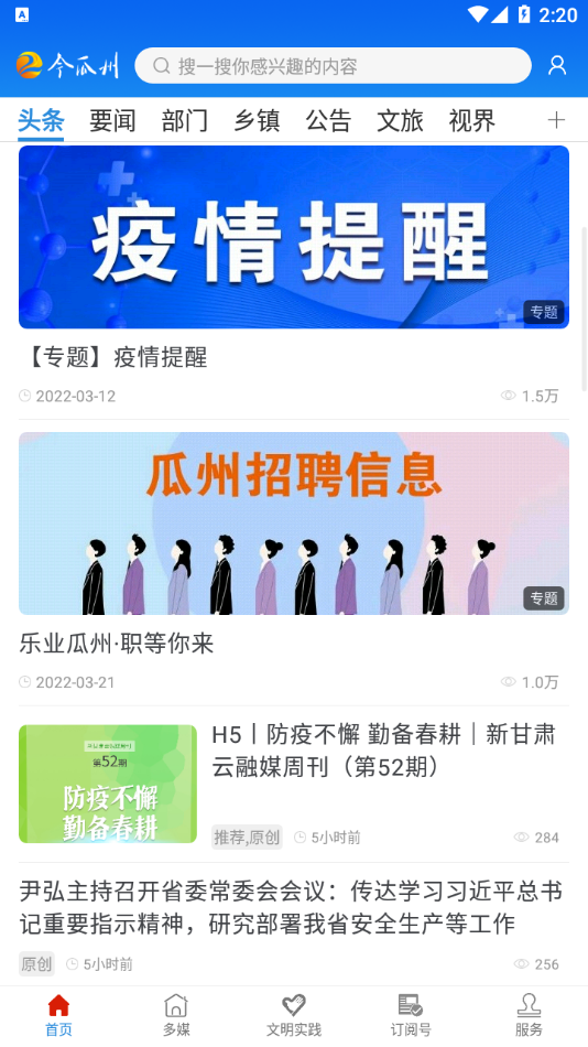 今瓜州设置头条、图说、视频、文艺、专题、服务等栏目,在这里讲好瓜州故事,