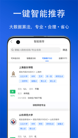 2、数据全面:拥有往年连续六年的全国录取数据,为录取提供最可靠的参考。