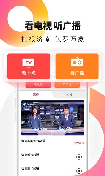 3、广播频道,提供广播收听的形式, 让您随时随地都能了解在线情况;