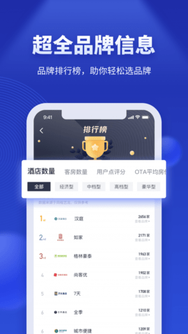 1、酒店服务平台,平台拥有酒店品牌排行榜;