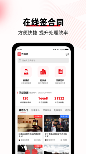 在用户签约过 程中,大鸿签还提供一对一法律咨询、合同模板定制等服务,为电子签约全程保驾护航。用大鸿签,高效安全。