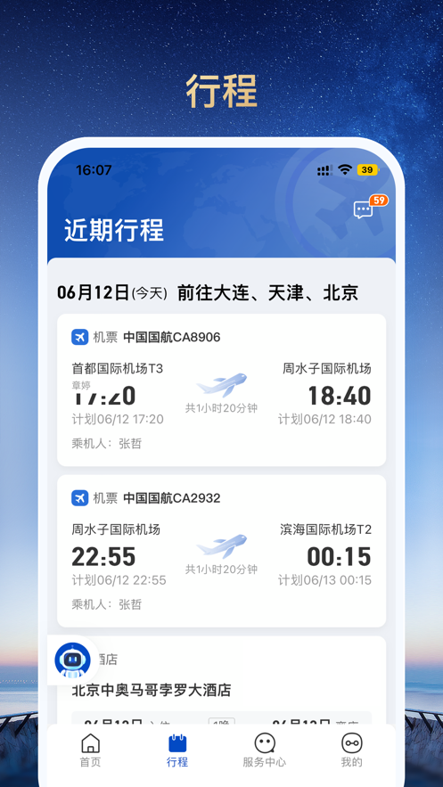 旅途管家APP汇聚了市面上的大多数商旅资源,让企业员工能够根据实际需求自主挑选合适的出行项目,同时在预定后实时监控航班、酒店状态,一旦有变化立即通知,帮助用户及时调整行程,减少因变化带来的损失。