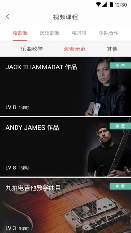 平台提供视频示范指导练习,让专业的导师手把手教会用户吉他弹奏