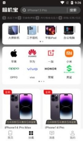 租机宝是一款非常好用的电子产品租赁平台,这款软件内拥有超多的数码产品,包含了手机、电脑、品牌、相机等等,各种品牌也是应有尽有,不仅品质有保障,租赁的价格也非常的实惠,让大家花最低的价格就能畅享优质的体验,用户可以在线浏览自己想要了解的各类电子产品租赁消息和相关价格,平台也会根据用户的使用需求实时为你推送最新租机服务和产品数据,有需要的朋友欢迎下载体验哦。