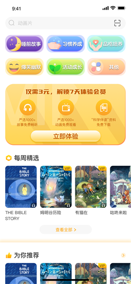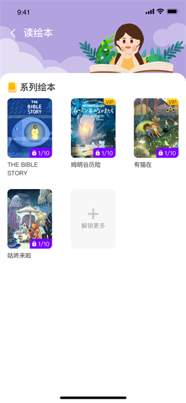 2. 提供大量高质量原创绘本与经典童话故事,搭配生动音频朗读和精美插画。