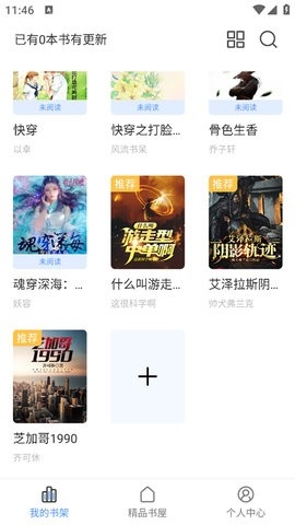 1、用户打开奇墨小说app,进入首页,在我的书架页面,用户可查看推荐书籍和有更新的书籍,点击个人中心;