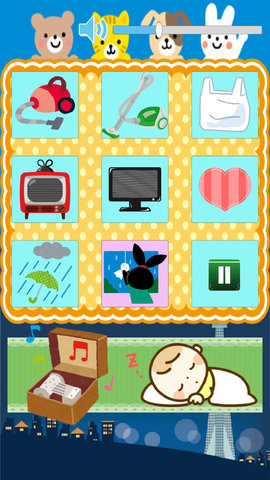 1、宝宝可以自己选择想听的音乐盒子,在游戏中选择自己喜欢的音乐。