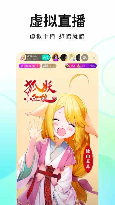 用音乐展示自己,用歌声与观众互动。这是一个唱歌超好听的直播平台,汇聚了各类歌手,拥有大量原创伴奏,还有演唱会、录音棚、KTV等不同音效。第二次开放的视频直播体验带给观众一场全新的音乐互动盛宴!