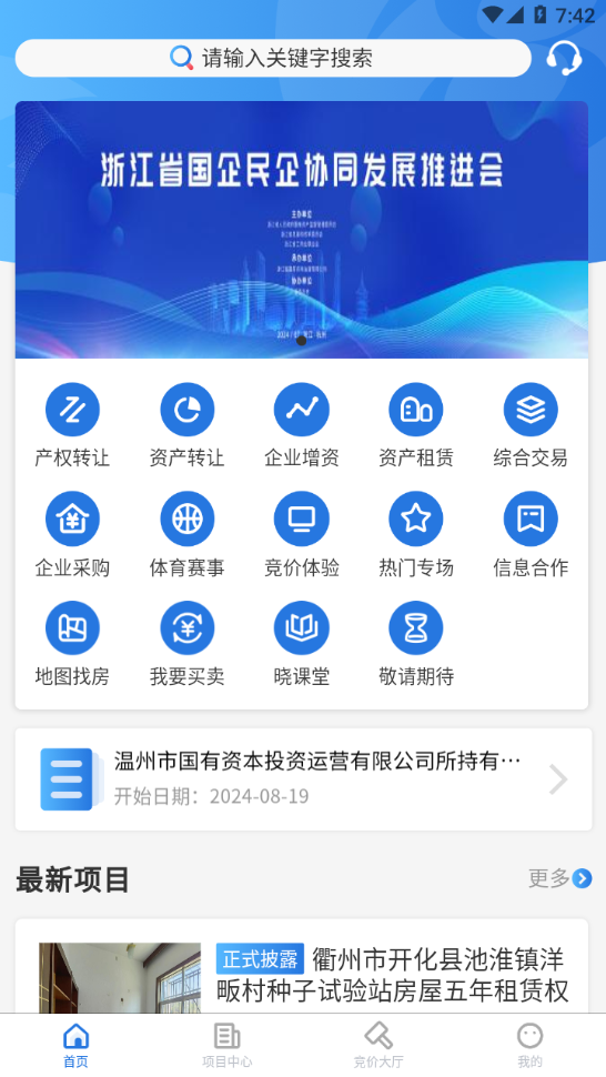 浙交汇app下载是浙江产权交易所有限公司官方倾情推出,软件拥有首页,项目中心,竞价大厅,我的等等功能板块,可以帮助更好的产权交易。