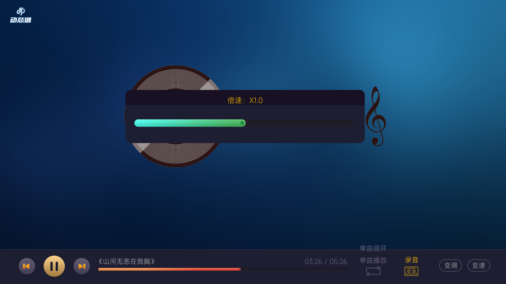 1、提供有谱伴奏、火鹰动态谱、节拍器等功能。
