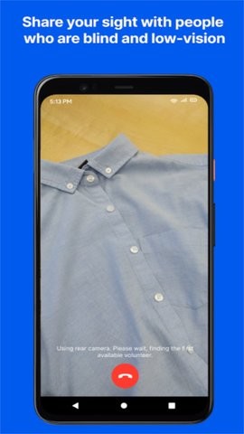 1、盲人或视障用户可以向视力正常的志愿者请求帮助,他们将通过手机收到通知。一旦第一眼的用户接受了求助请求,两部分之间将建立实时音频-视频连接。有视力的助手现在可以通过来自盲人或视障用户的后置摄像头的视频连接来帮助盲人或视障者。