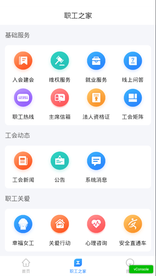 入会建会、维权服务、就业服务、线上问答、职工热线、主席信箱、法人资格证、工会矩阵