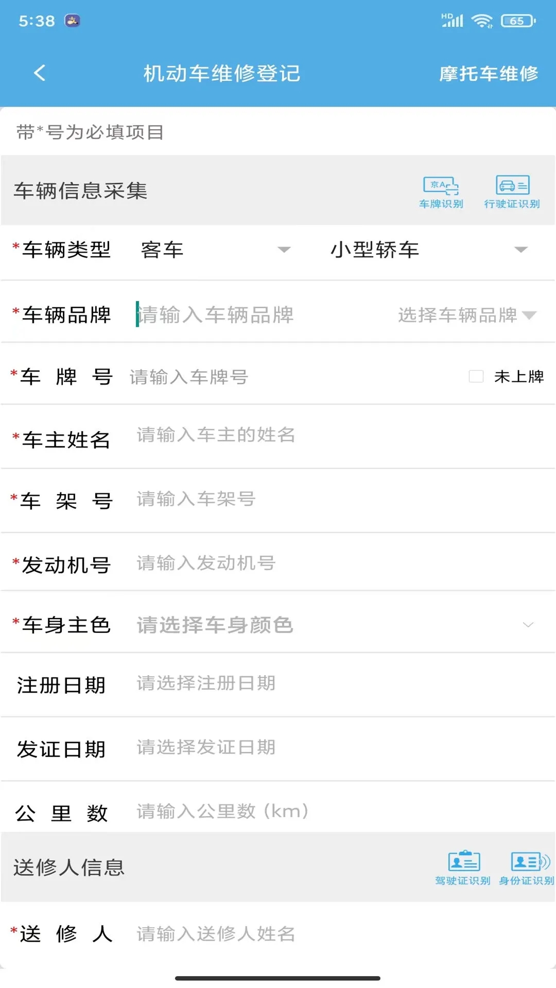 中安车服企业,主要实现对维修机动车进行信息登记和数据上报等功能。