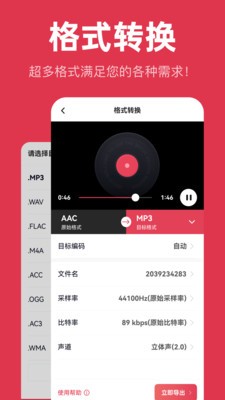 3、超多的格式满足你的需要,还可以进行音频文件压缩,减少体积。