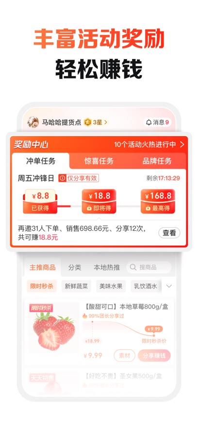 主要功能是接受并处理用户订单,收货、提货、处理售后;同时让您用手机轻松管理团点,随时调整营业状态、查看收益、活动营销。
