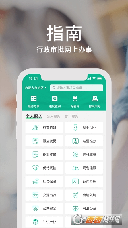 1、个人办事、法人办事、部门办事。为您提供贴心的办事指南