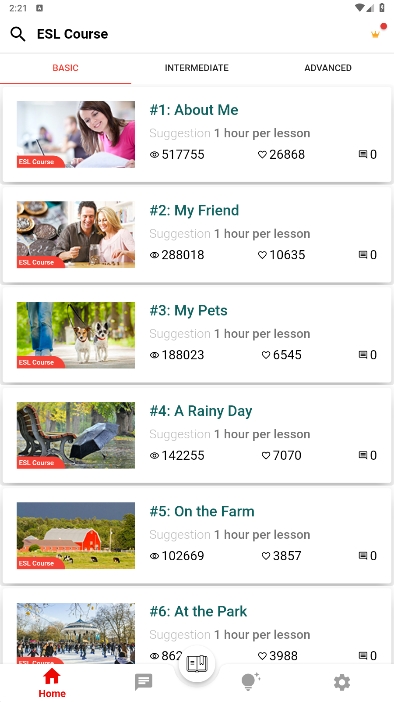 ESL Course客户端提供了专业英语教学,为想要提高英语水平的用户打造了能够在线上随时学习的便捷平台,不管是背单词、口语训练还是听力练习,都能够在这里找到对应的学习专题,是学习英语的好选择,涵盖了从零基础到高级水平的不同学习需求。