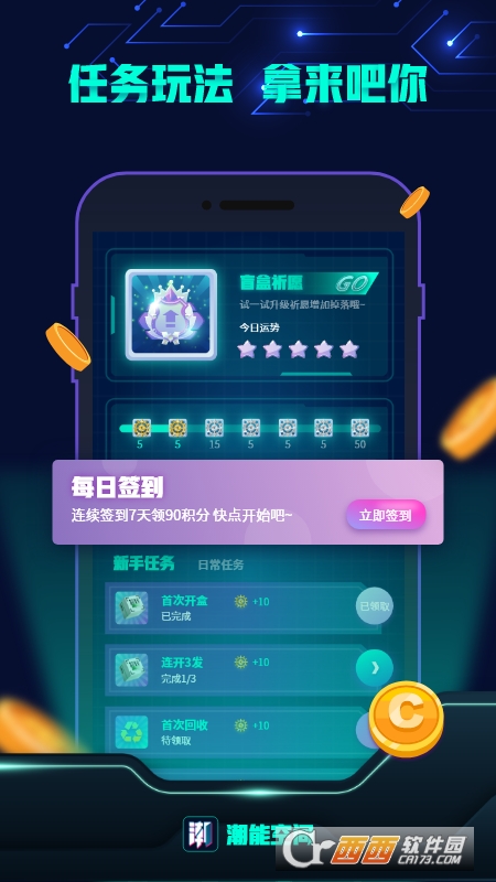 里面的潮能点还是非常好获得的,你在里面每天都签到的话也是可以获得点的;