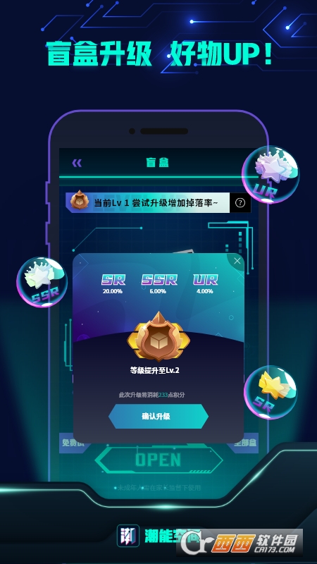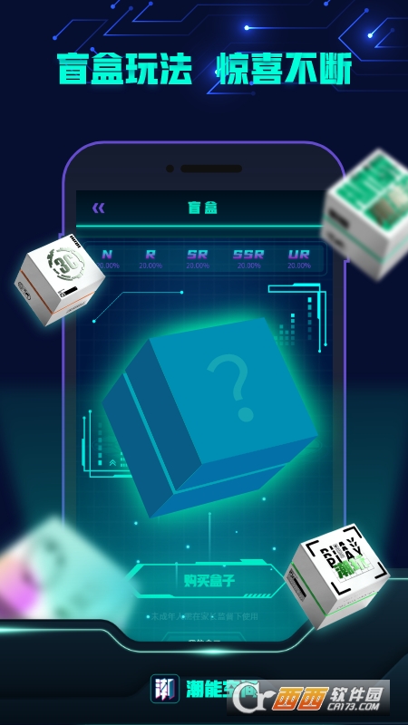潮能空间为次元街(成都)网络科技有限公司开发的一款游戏化电商平台,软件除了拥有正常电商app的常规功能以外,还推出了特色的游戏化玩法以便给用户提供给用户更好的购物体验,目前主要游戏化玩法为盲盒玩法,用户可以购买平台内部的盲盒,盲盒当中可以百分百商品,不存在空盒。