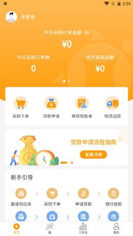 3、平台同时为广大用户提供了非常全面的新手指引功能,用户们可以在平台上要去供应商,申请贷款,或者是上架商品,出库商品;