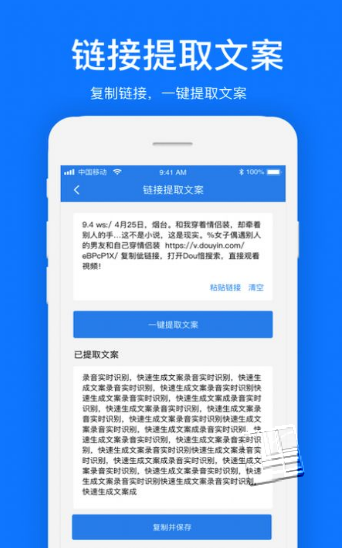 文案提取软件ap一个文本识别软件,用户可以提取音乐或文案中的汉字,让用户一键快速提取用户想要识别的文字,快速提取给用户生活带来便利,支持在线编辑文字,省时省力,方便用户的生活和工作。