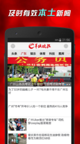1,羊城晚报app依据专业的模式以及在新闻行业中多年的耕耘经验,建设了非常强大的网络新闻媒体设计模式,同步更新最新的各种新闻热点内容,提升更加轻松。