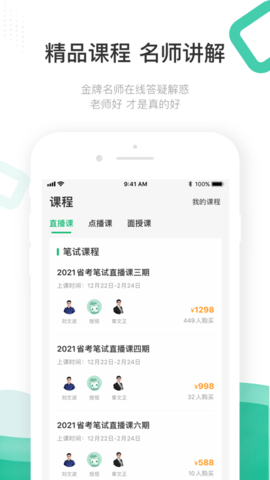 精品课程,名师讲解。金牌公考名师在线答疑解惑,老师好才是真的好,直播课程可以有效实现师生线上互动,支持下载离线观看,并且可以无限次回放!